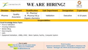 Extensive career opportunities in Hyderabad’s pharmaceutical and clinical research sectors. Hiring for Quality Assurance, Validation, Clinical Monitoring, and Production roles...