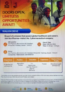 Top pharma apprenticeship jobs in January 2026. Sun Pharma Assam, Encube Ethicals Pithampur, and Zenotech Hyderabad are hiring freshers for...