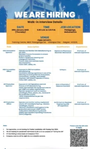 Major pharmaceutical walk-in interviews in January 2026. Career opportunities at Micro Labs, Dr. Reddy’s, Mylan (Viatris), Virchow Biotech, and Neuland...