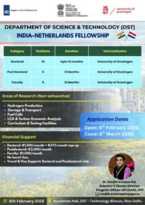 The India–Netherlands Fellowship Programme, launching 6 February 2026, represents a massive investment in the future of green hydrogen. This partnership between the DST (Govt. of India) and the University of Groningen offers doctoral and postdoc scholars a unique international platform.