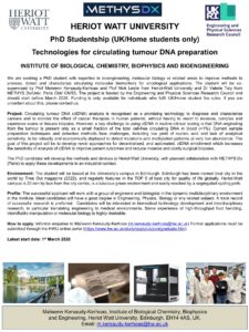 Fully Funded PhD – ctDNA Cancer Diagnostics (Heriot-Watt University, UK – Home Students Only)