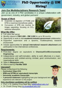 Fully Funded PhD – Bioenergy & Biogas (University of Malaya)