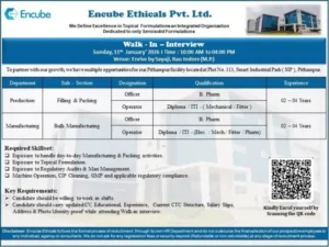 Encube Ethicals is specialized in topical and semi-solid formulations. They are hiring for their Pithampur site.