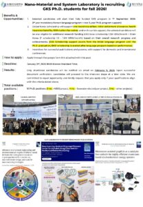 The positions are housed within the Department of Material Science and Electrochemistry. Following the acquisition of high-end research projects and start-up initiatives, the university is focusing on: