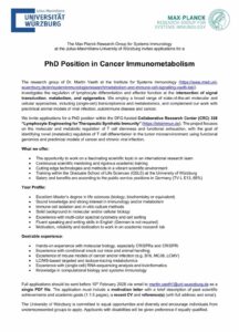 The Max Planck Research Group for Systems Immunology, situated at the Julius Maximilians University of Würzburg, is a world-class hub for immunological studies. Dr. Martin Vaeth’s lab is currently seeking a PhD candidate to explore the frontiers of Cancer Immunometabolism.