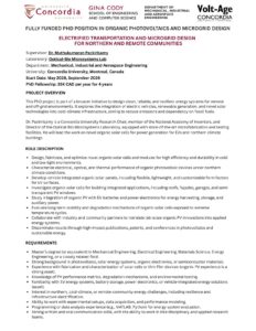 Organic Photovoltaics PhD Rolling Basis volt-age.recruitment@concordia.ca