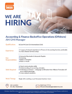 Gland Pharma, a pioneer in injectable formulations, is expanding its offshore finance team in Hyderabad. These roles support global operations, specifically catering to the European business market.
