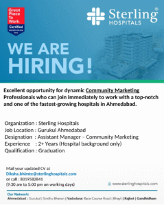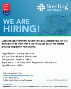 How to Apply: Send CVs to Diksha.bhimte@sterlinghospitals.com or call 8319582841.