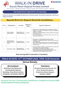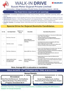 Discover the latest Mega Walk-In Drives happening in October 2025 across India! Top companies like Cognizant, Genpact, HCLTech, Suzuki Motor Gujarat, and Coforge are hiring freshers and experienced professionals for roles in International Voice Process, Content Moderation, Finance, Data Engineering, and more. Apply for full-time roles in Pune, Hyderabad, Chennai, Ahmedabad, and Vadodara. Check venue details, eligibility, skills required, and walk-in dates here.