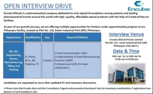 Important Note for Candidates: Applicants must arrive clean-shaven for the interview—a standard protocol in sterile pharmaceutical environments. Ensure you carry your updated resume, one passport-size photo, and photocopies of your PAN card, Aadhaar card, and all educational mark sheets.