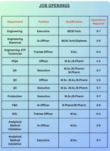 Eugia Pharma Specialties Limited is hiring experienced professionals across multiple departments.