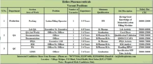 5) Helios Pharmaceuticals – Hiring for Production, QA & QC