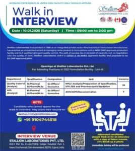 8. Stallion Laboratories – QC and ADL Specialist Roles