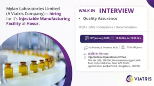 5. Mylan Laboratories (Viatris) – Injectable QA Walk In