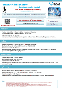 7) Ipca Laboratories – Walk in for Production, QC & Engineering