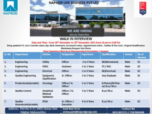5) Naprod Life Sciences Pvt. Ltd — Multiple Openings (Engineering, QC, QA, Production)