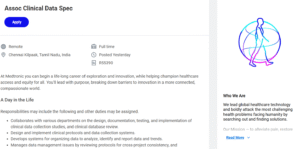 Medtronic, a pioneer in medical technology, is offering a unique opportunity for fresh graduates to join their clinical operations team as an Associate Clinical Data Specialist. This role is particularly attractive as it is a remote position based out of the Chennai region, allowing for a flexible work-from-home arrangement.